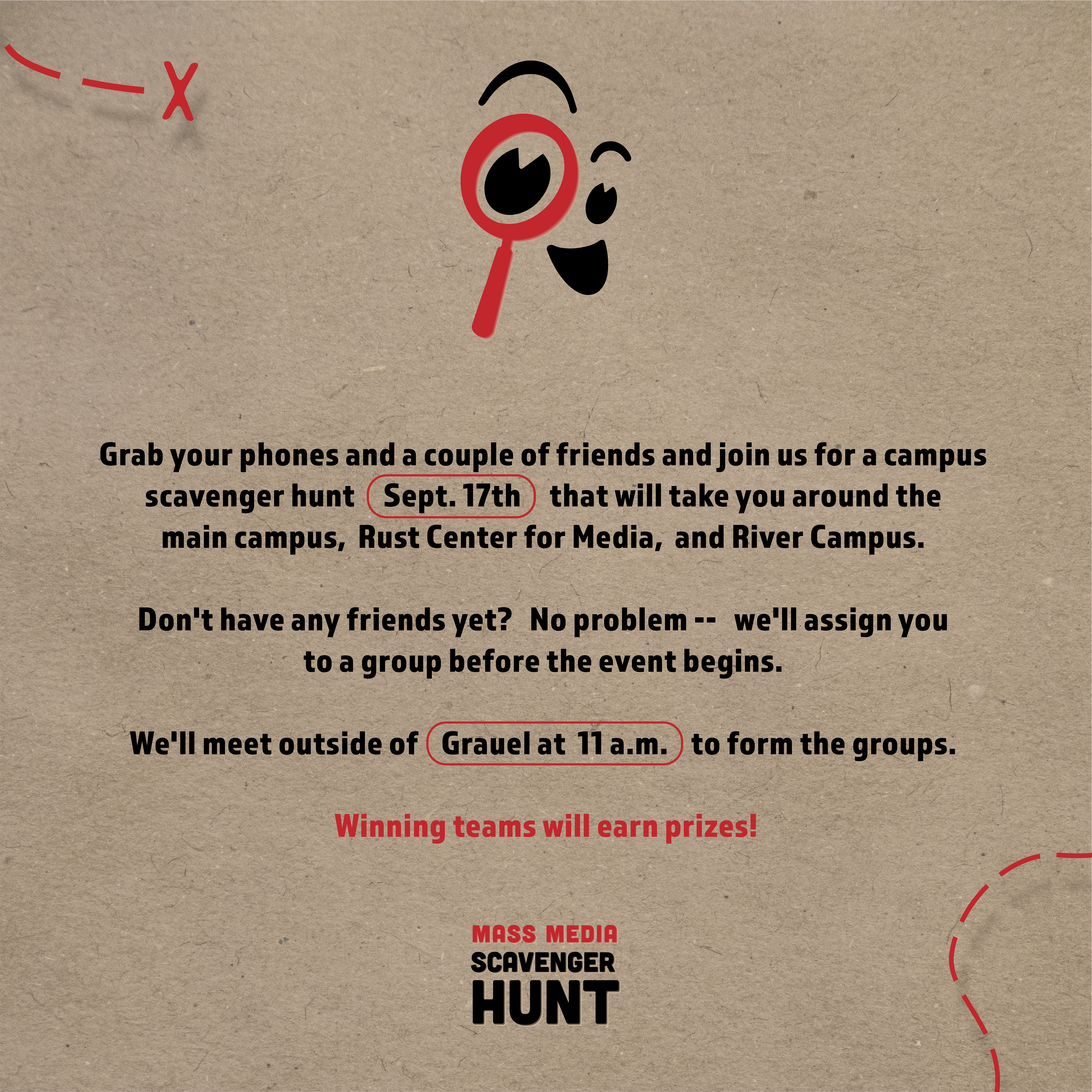 Event logos and digital assets created for the SEMO Department of Mass Media's special event – 'Mass Media Scavenger Hunt' produced through SE Creative Media Agency.